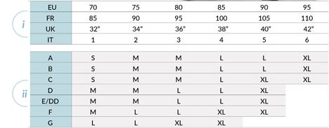 Après avoir trouvé votre taille de soutien-gorge grâce au lien présent à droite de la photo, reportez-vous au tableau ci-dessous pour choisir la taille (S, M, L, XL) correspondante.