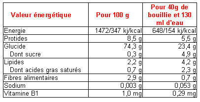 Farine de Riz Complètes, Vitamine B1.